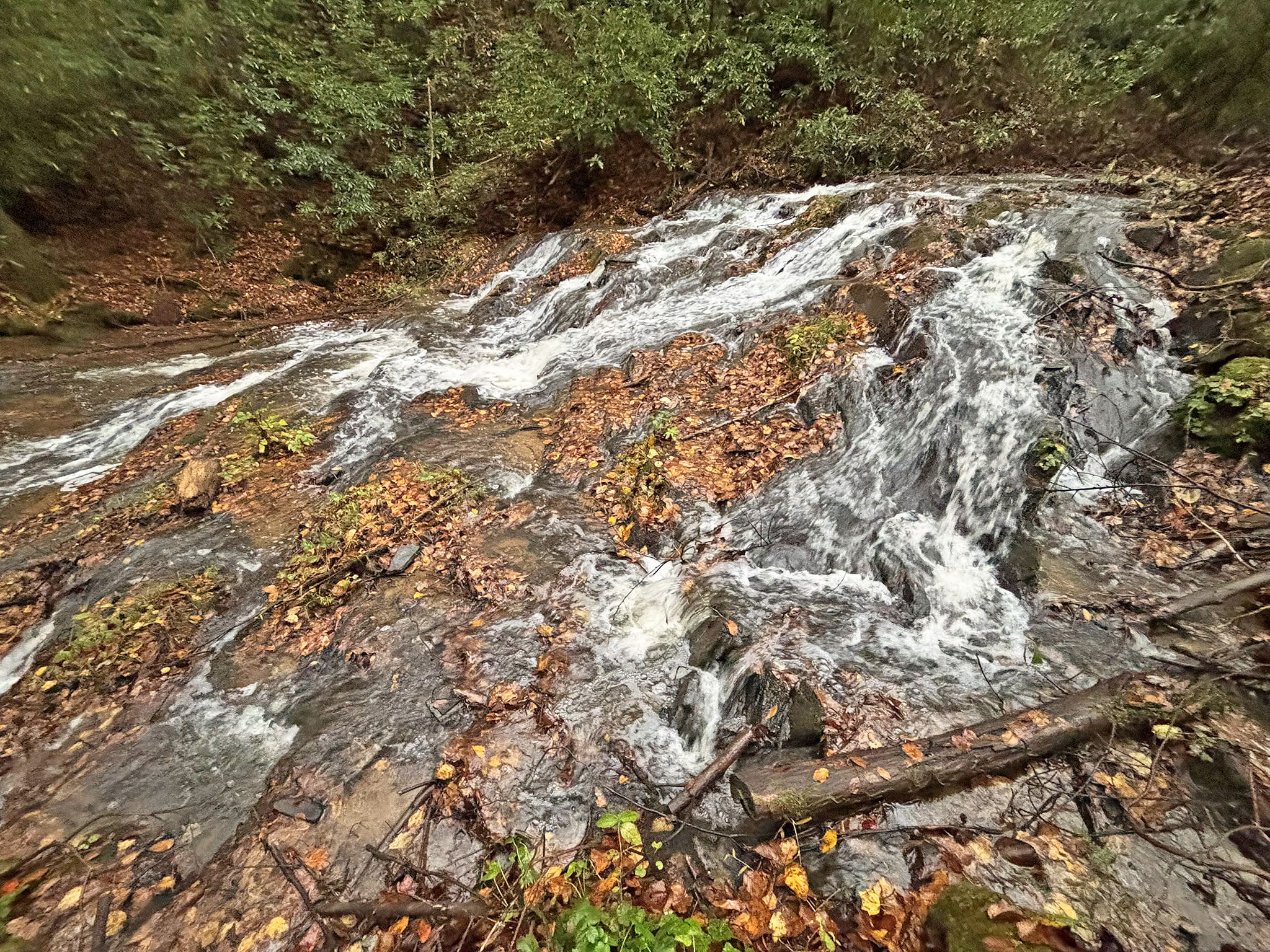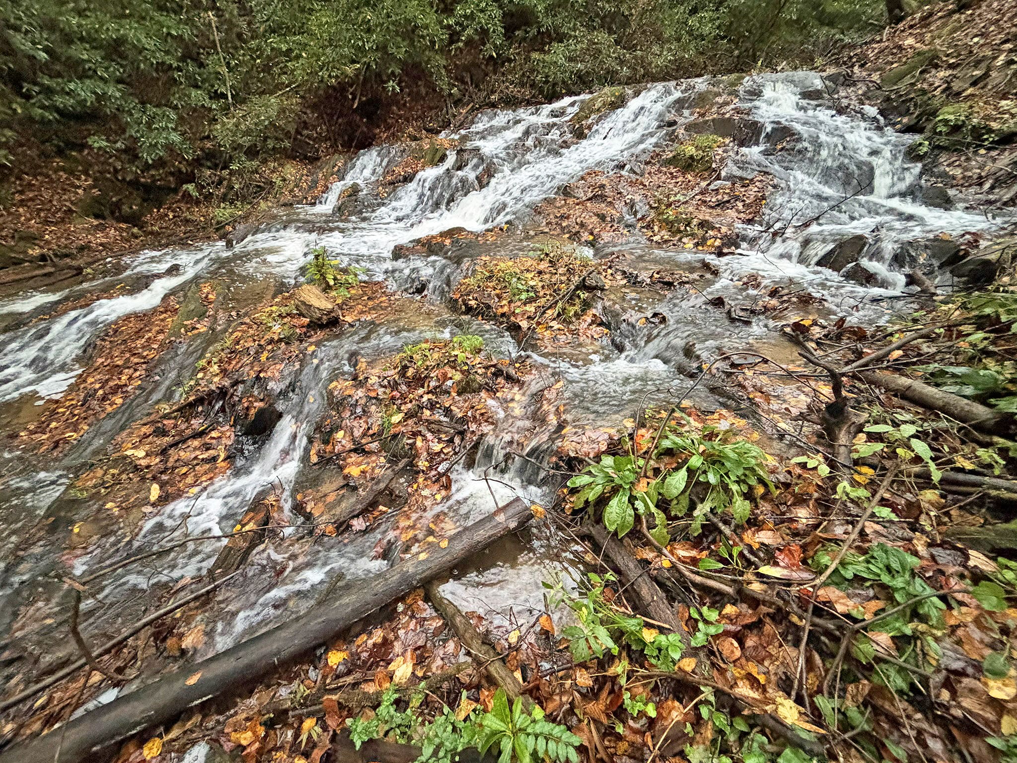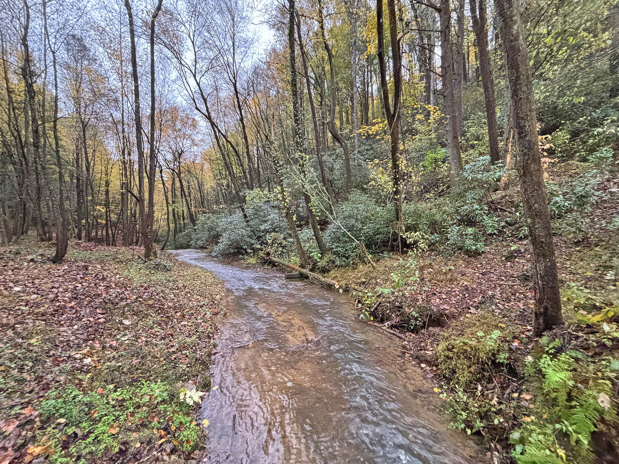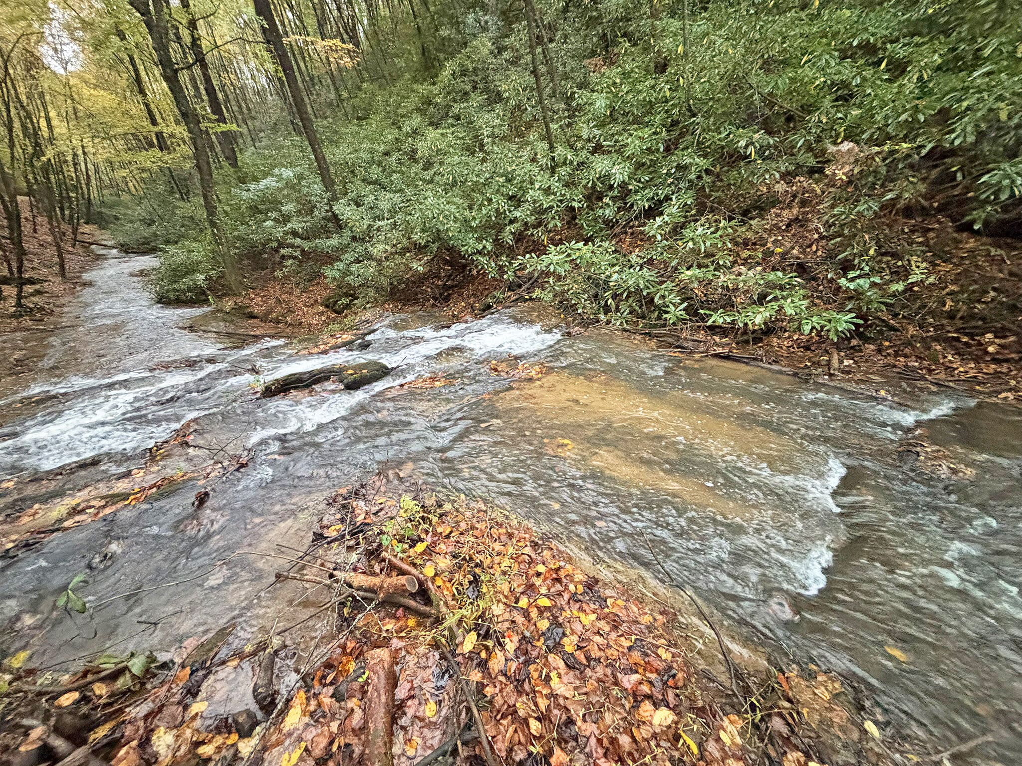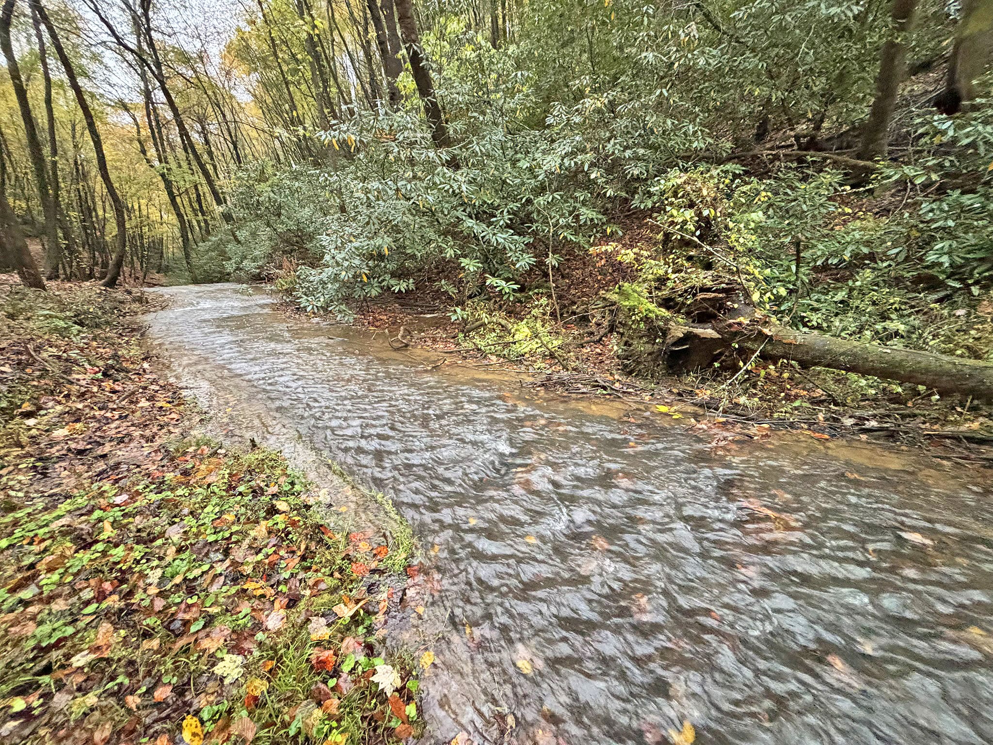 Surrounded by mountain laurel and massive hardwood trees. Pitch a tent, pull up your RV / camper or build a house, sit on your porch, relax, watch the occasional deer, wild turkey and other wildlife pass by, and enjoy the sights and sounds of several hundred feet of Sisson Creek as it flows across your property and cascades down across this large rock formation to create this incredible waterfall.